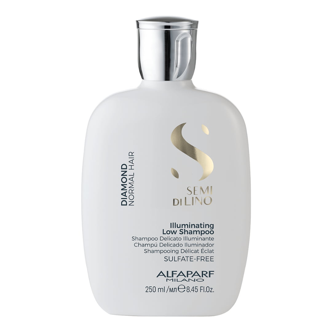 Alfaparf Semi di Lino Diamond Illuminating Low Shampoo es un shampoo profesional diseñado para cabello normal o ligeramente opaco que necesita brillo y luminosidad. Su fórmula limpia suavemente sin resecar la fibra capilar, ayudando a mantener el cabello suave, sedoso y con un brillo visible.
