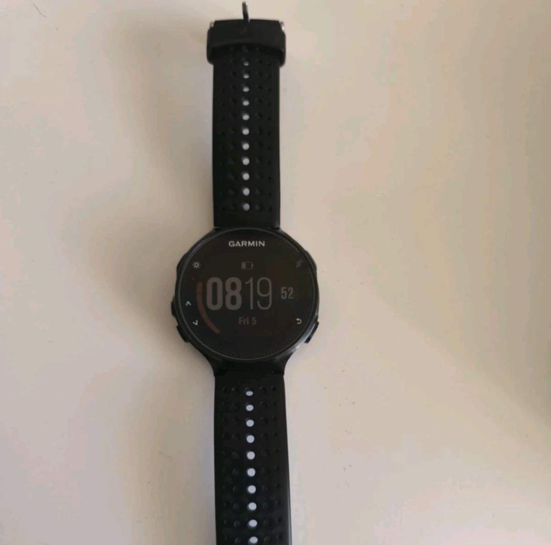 Usado, en buen estado. Reloj deportivo Garmin Forerunner 235 con GPS y monitor de frecuencia cardíaca. Ideal para correr, entrenar y llevar control de actividad diaria. Conexión Bluetooth con el celular. Incluye 2 correas , 2 cargadores y cajeta original.